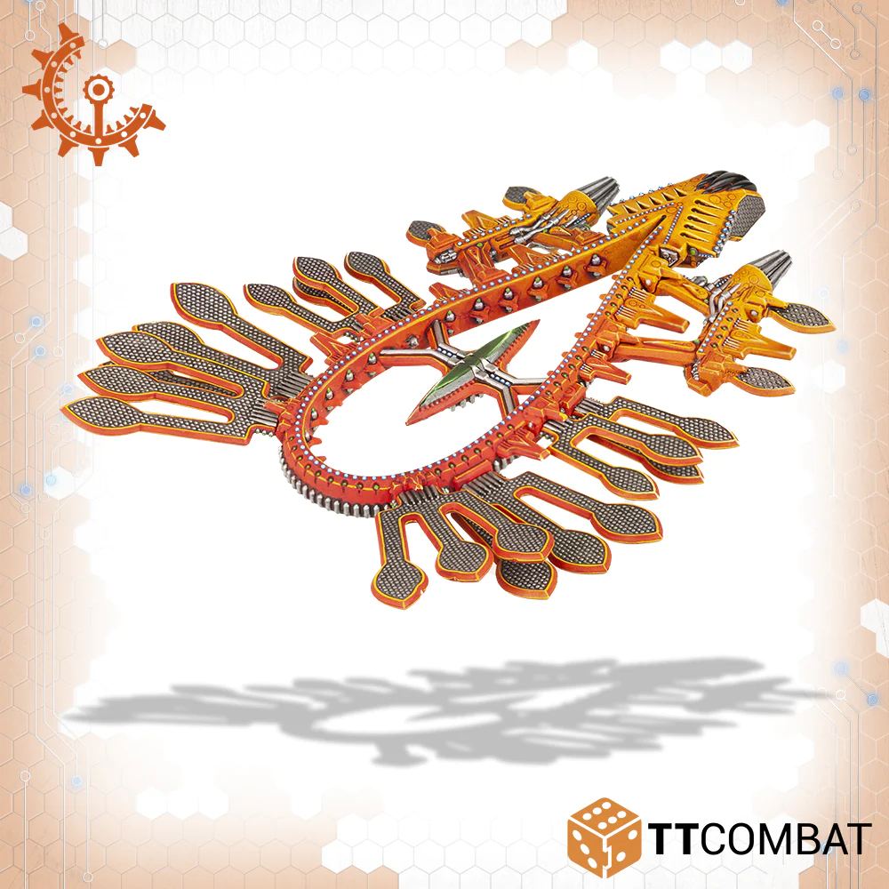 This formidable aircraft trades some transport capacity for a pair of front-mounted gravity cannons. These amplify the force of gravity to crush tanks like empty drinks cans, pulping their crews in the process. With formidable anti-armour weaponry, the Adamah can support its own landings, making it a singular threat that can operate far from support.