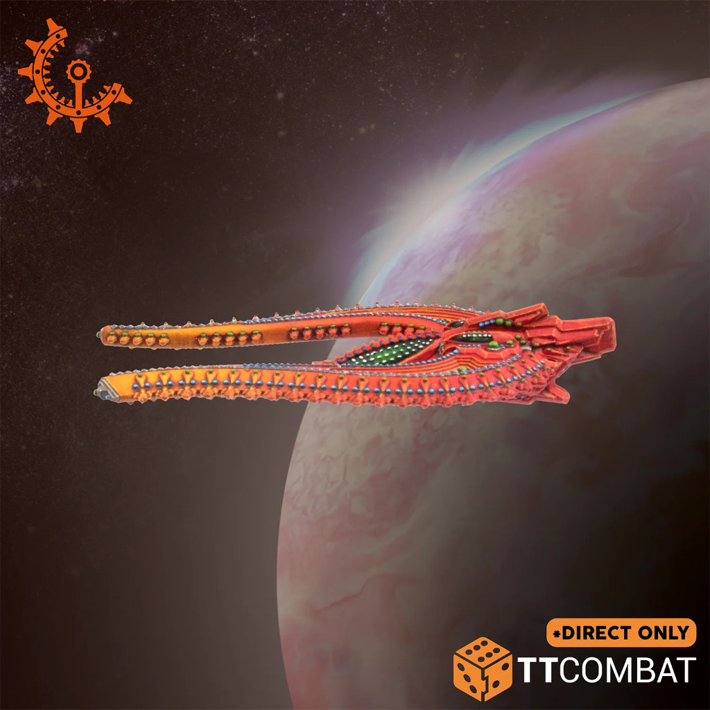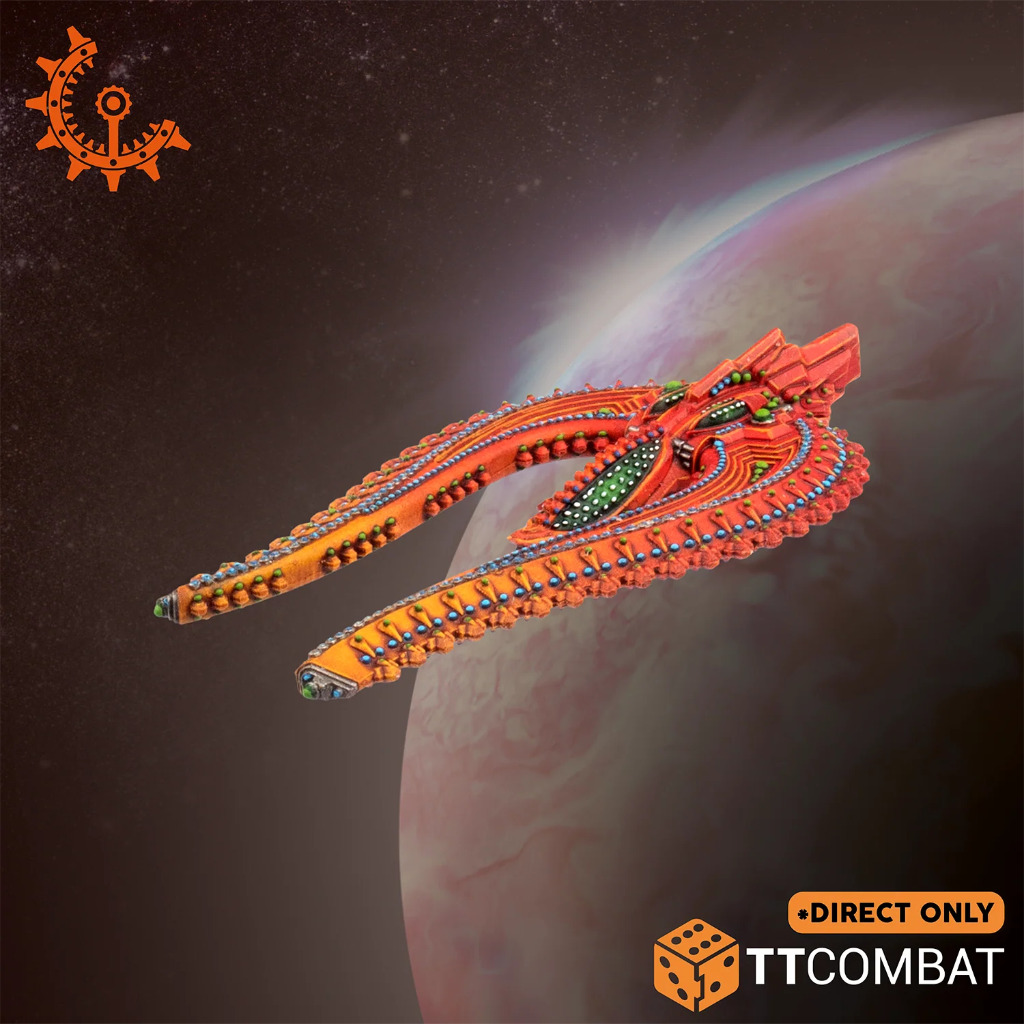 The Helium Voidflyer is a slippery adversary and a worrying technological twist in Shaltari naval combat. Troops on the ground are sadly familiar with the aliens’ capricious ability to teleport battlefield-level vehicles in and out of hot zones via their gate network. On a strategic level, naval planers have considered this tech limited to deployment of smaller constructs – not so, it seems.