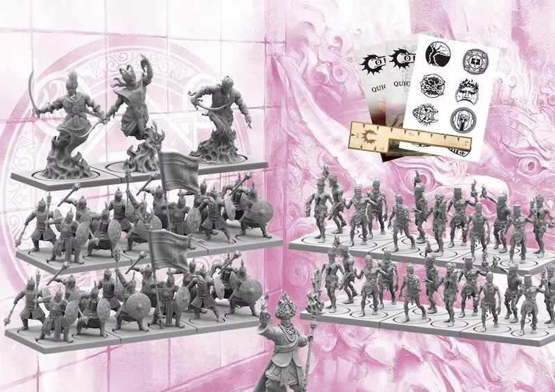 A supercharged 1 player starter ready to play a game of First Blood or The Last Argument of Kings for Conquest’s 8th Faction. This Sorcerer Kings set is loaded with a complete stand of 3 Efreet Brutes, 2 stands of Ghols and 2 stands of Rajakur, and the Maharaja character. Each starter set will have a well built First Blood army as well as a great beginning set to play a game of Last Argument of Kings. Included in this set are quick start guides for First Blood II and TLAOK II, along with all assembly instructions, a great path of Conquest guide, a 5th Anniversary Decal and Measuring Tool, an EA Paper Map and all necessary command cards, bases and stands. A great value for players, a substantial discount over the prices if purchased separately.