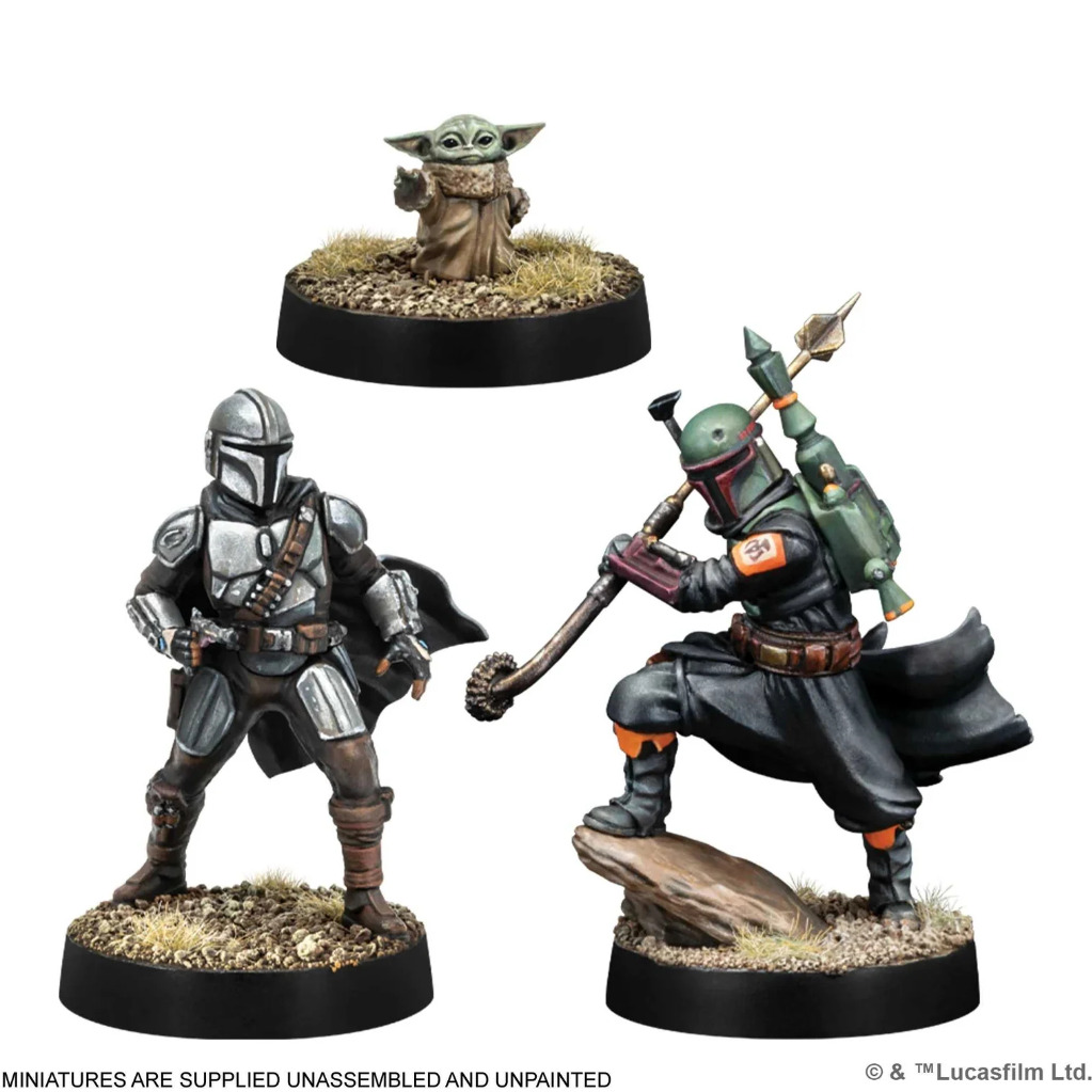 Once the galaxy’s most formidable bounty hunters have received a contract, they will stop at nothing to accomplish their mission. Equipped with iconic beskar armor and a deadly arsenal of weapons, their unmatched prowess puts their enemies to the test. Boba Fett (Daimyo) strikes fear into the hearts of his enemies and ensures no one escapes his grasp. Joined by Din Djarin, known as The Mandalorian, and his counterpart Grogu, a foundling with a strong connection to the Force, this trio of characters brings a wide variety of iconic abilities to the battlefield of Star Wars™: Legion.