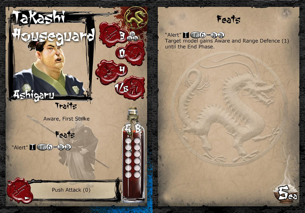 All lords maintain a healthy number of household guards, training warriors to keep them safe from their enemies. The Takashi guard’s body may not be as lead for hone as that of the Ashigaru who constantly train and drill. This does not mean that their eyes are not sharp as blades and their ears keen as hawks, honed of watching for threats to their lords and ladies.