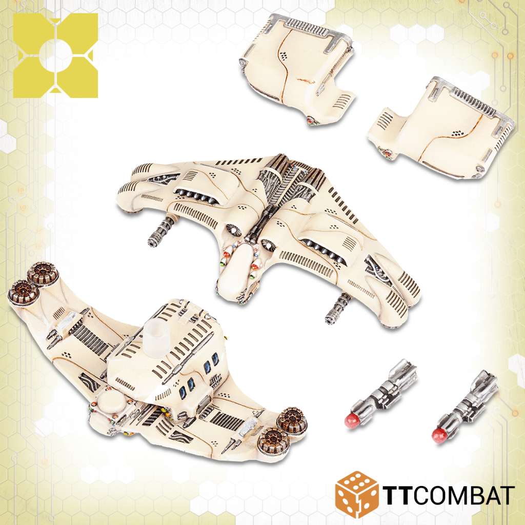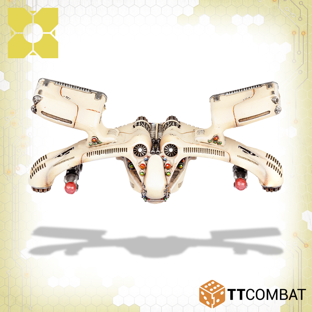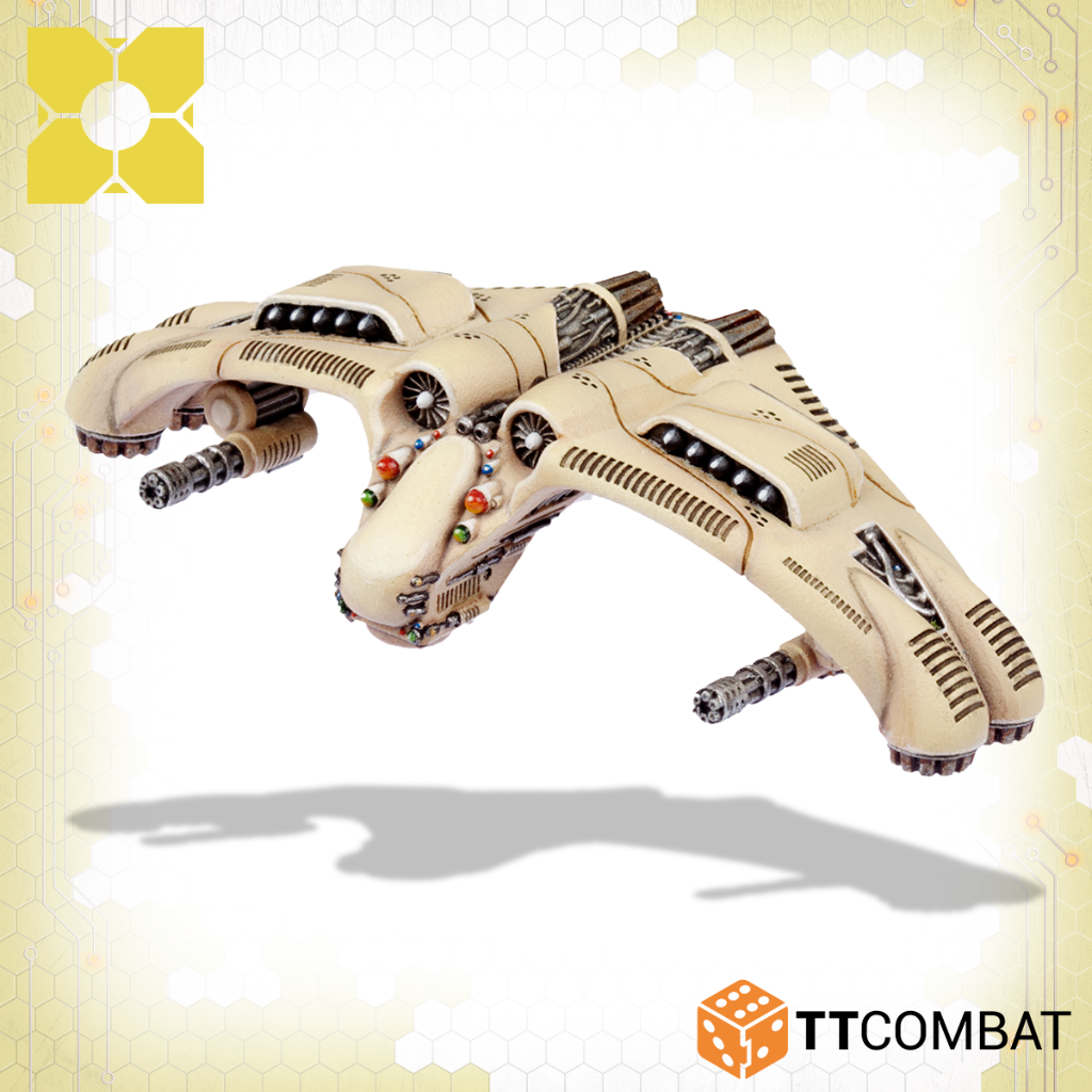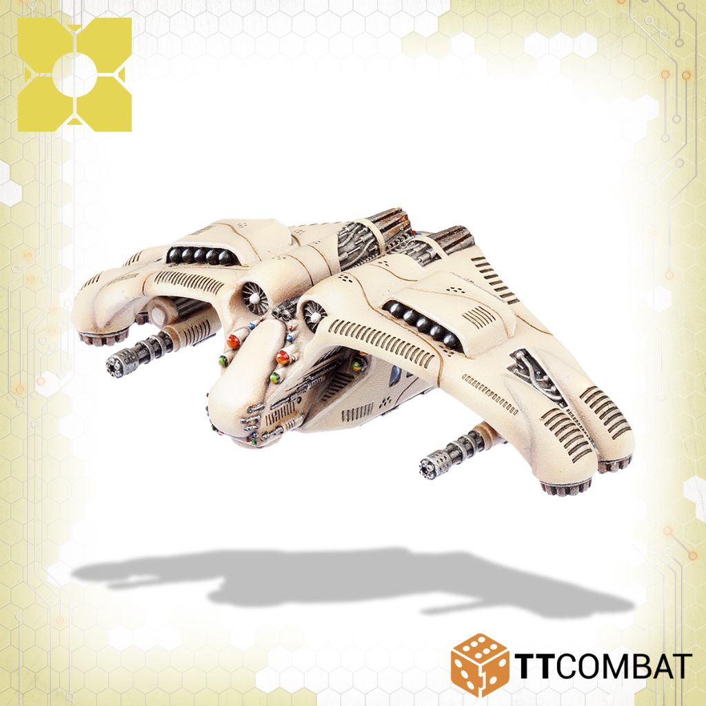 The Triton is a multi-role atmospheric flier acting as both a light transport and gunship. Modular weapon systems can be added or removed rapidly, allowing the aircraft to be flexibly equipped at short notice.