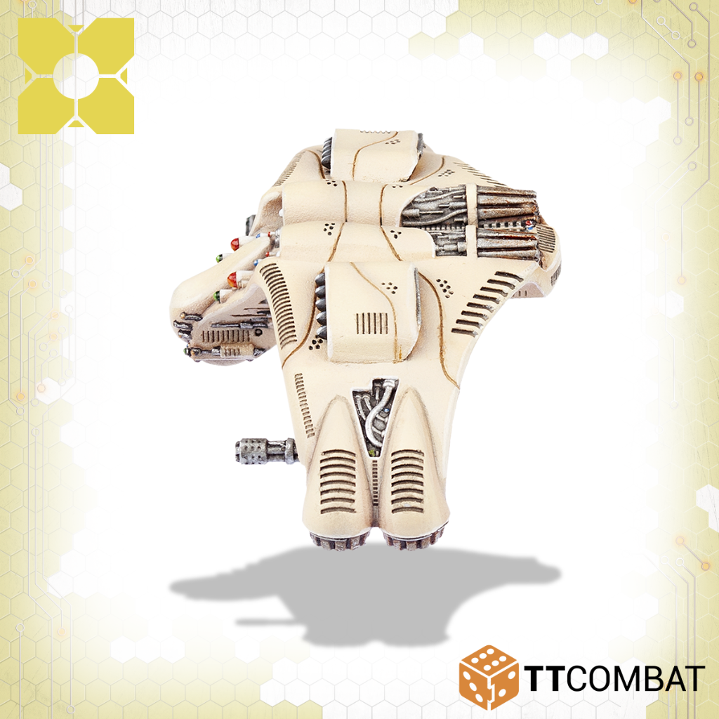 For anyone wanting to transport their Sirens, Medusae, Valkyries, or any other crazy elite fighters the PHR can come up with, the Triton is the go-to transport. Either that or use the Dropship for Mercury Scout Drones or Janus Scout Walkers. Although it has a small transport capacity, its modular design means you have loads of options for arming it. Take them without any weapons for a cheap ship! Add Dual Miniguns or Skyhammer Missiles under the wings (especially if you have some spare Mercuries flying around), or a Stealth Missile Battery or Aether Hive Nanomachines on the top. Handy!