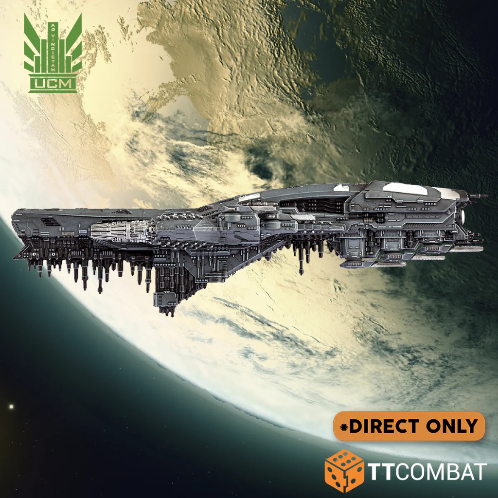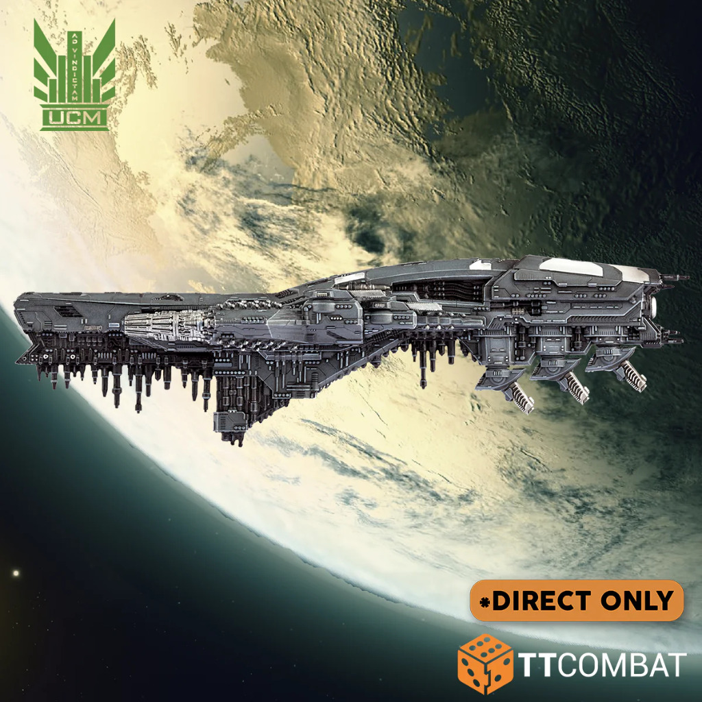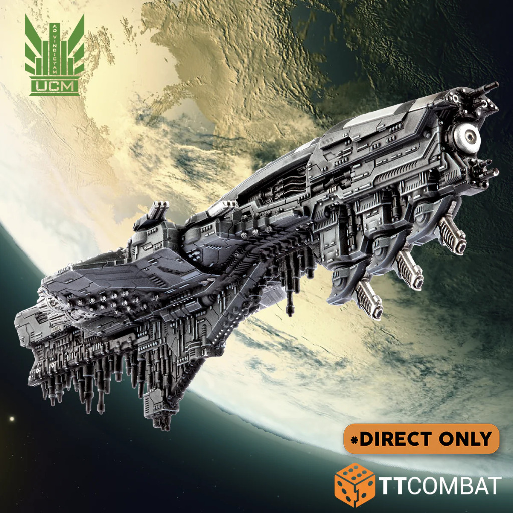 The colossal Tokyo class battleship is one of the most specialised ships of this tonnage level in the UCMF. While based on the Beijing design, this class dispenses with its main mass driver battery in favour of three turreted UF/B-8000 bombard cannons, making this one of the most formidable orbital bombardment platforms anywhere in the Reconquest. Only the UCM has need of a battleship sized vessel designed for this purpose, such is the scale of the mighty undertaking.