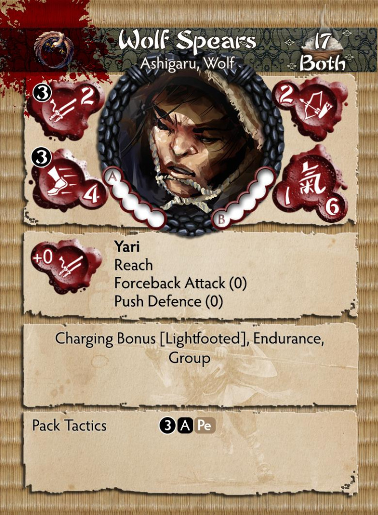 This unit calls itself the Wolf’s Teeth, as it wields spears, thus making their coordinated attacks all the more silent and deadly.Wolf spears are deceptive in their melee capability, especially when against fighting Exhausted models, which gives them a buff. With their feat, combined with the Group Trait, they should be up to the heights of Melee Pool 4. As with much of the Wolf Clan, set-up and group activations at the right time are the path to victory. Shiho players can also include these models, and alternative Ashigaru are suitable to provide options when list building.