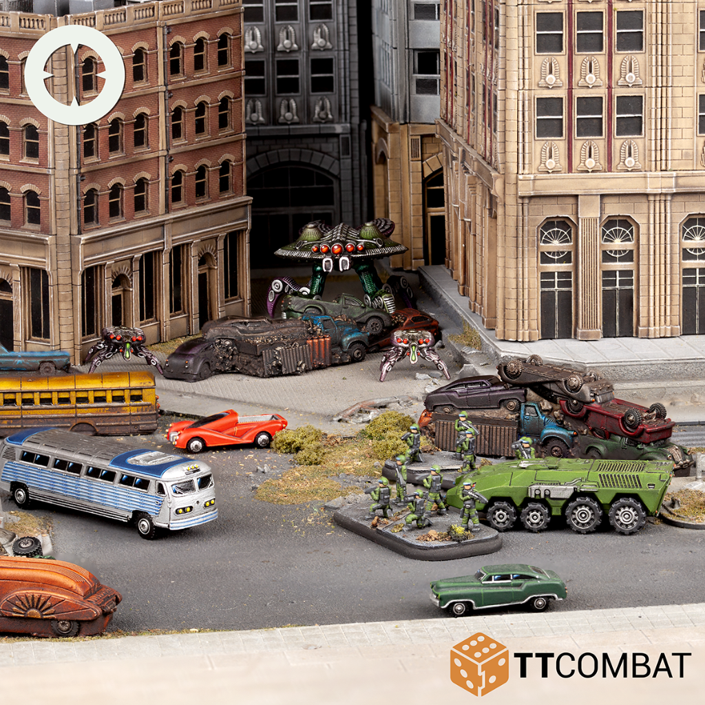 The Wrecked Highway set contains 5 wrecked piles, 2 random cars and a random bus. Ideal for providing cover and breaking line of sight in Dropzone Commander and other 10mm wargames.