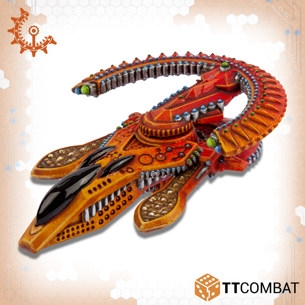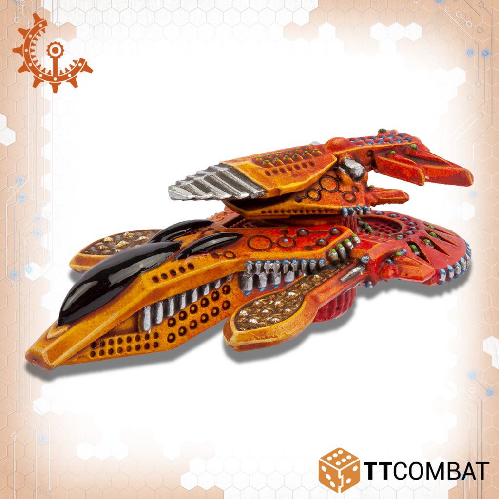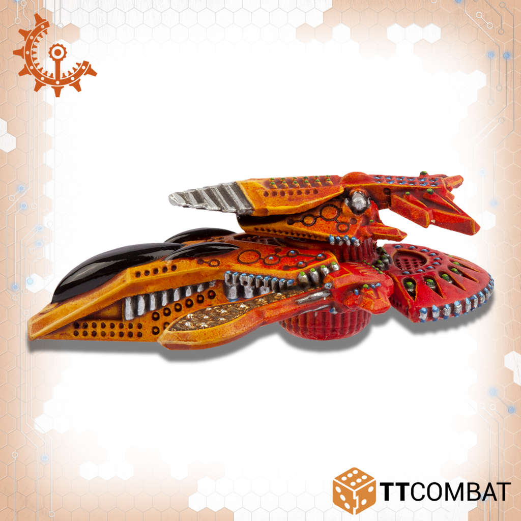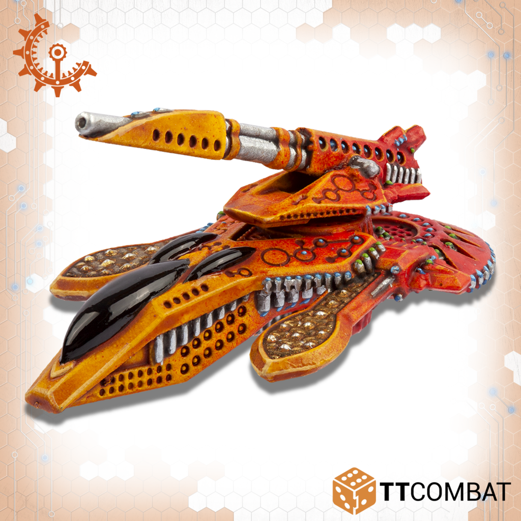 Contains four multi-part skimmers that can be assembled as either a squad of Yaris or a squad of Tates. 10mm in scale with a length of 31mm.